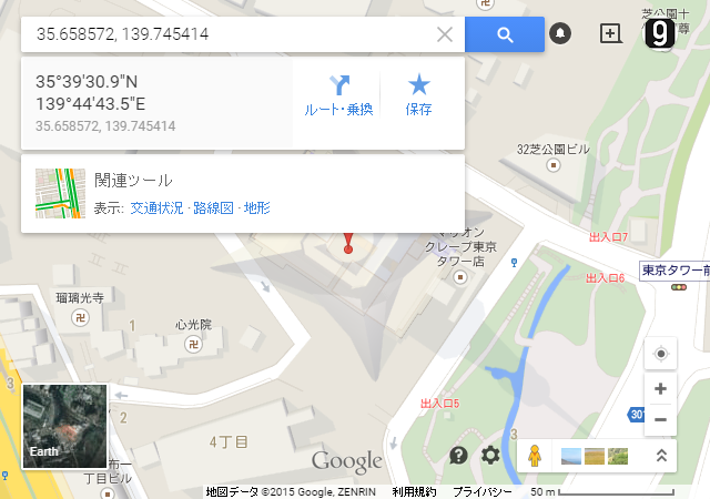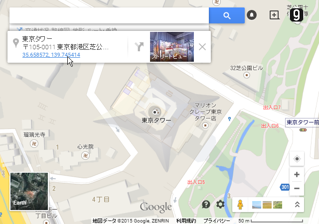}経度、緯度の取得方法