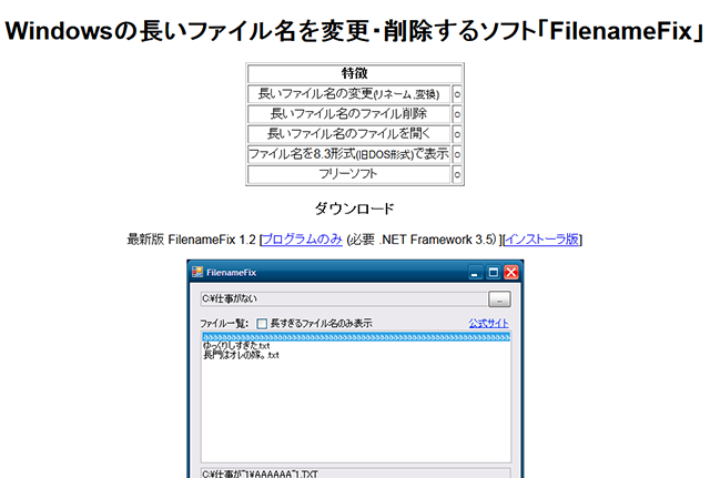 Windowsの長いファイル名を変更・削除するソフト「FilenameFix」