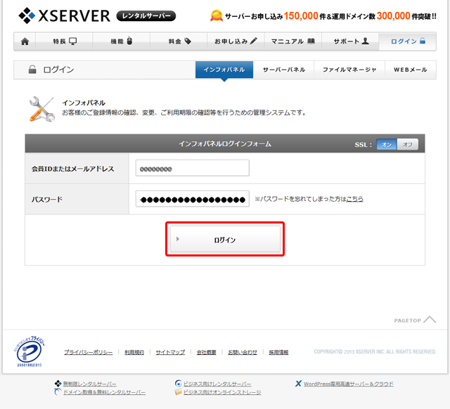 まずは、インフォパネルへログインします。