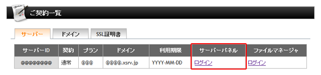 次に「ご契約一覧」のサーバータブ内の「サーバーパネル」にログインします。