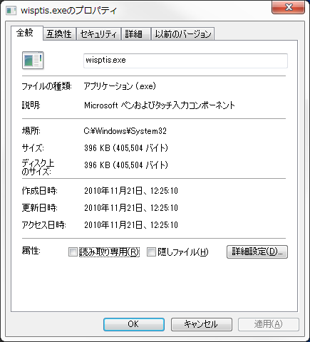「wisptis.exe」の説明に「Microsoft ペンおよびタッチ入力コンポーネント」とあります。