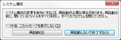 「OK」を押すと、再起動のメッセージが出ますので、再起動してください。