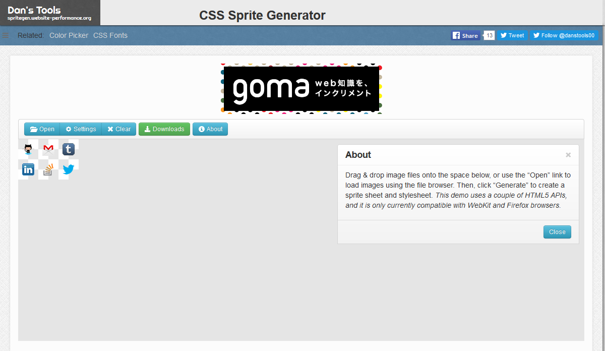 スプライト画像を作成するのが非常に簡単なオンラインツールです。