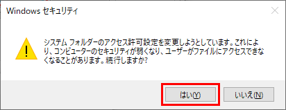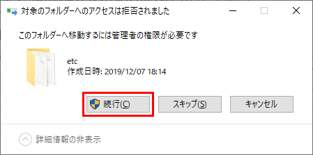ファイルを上書きする際に「対象フォルダーへのアクセスは拒否されました」エラーが出ますが、続行を押してください。
