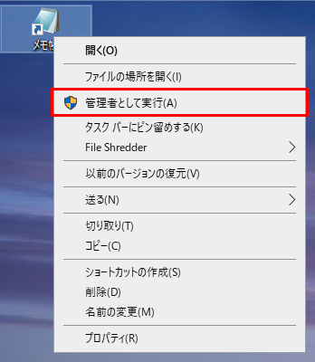 タイトル通りで、メモ帳を管理者として実行して起動し、hostsファイルを編集し保存してください。